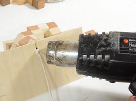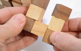 Finally, prying open a space for the last cube and gluing the cube together.