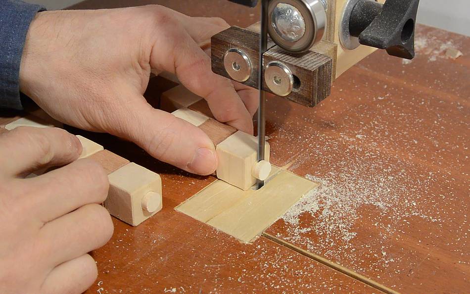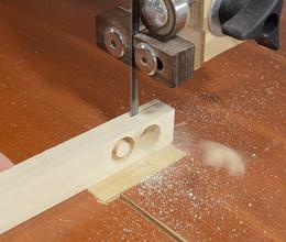 The plugs are freed by cutting through the wood with a bandsaw. The plugs