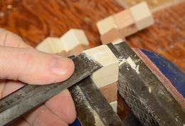 I did have the foresight to put a chamfer on the long edges of the sticks before I cut it into cubes so the long-grain edges were already pre-chamfered.