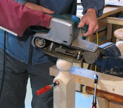 of my belt sander to make it easier to sand a soft curve onto the top of the knob.