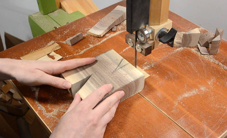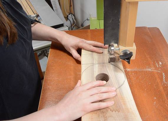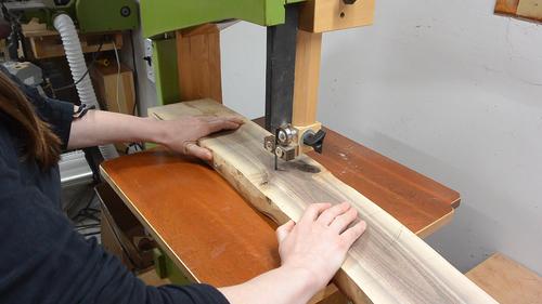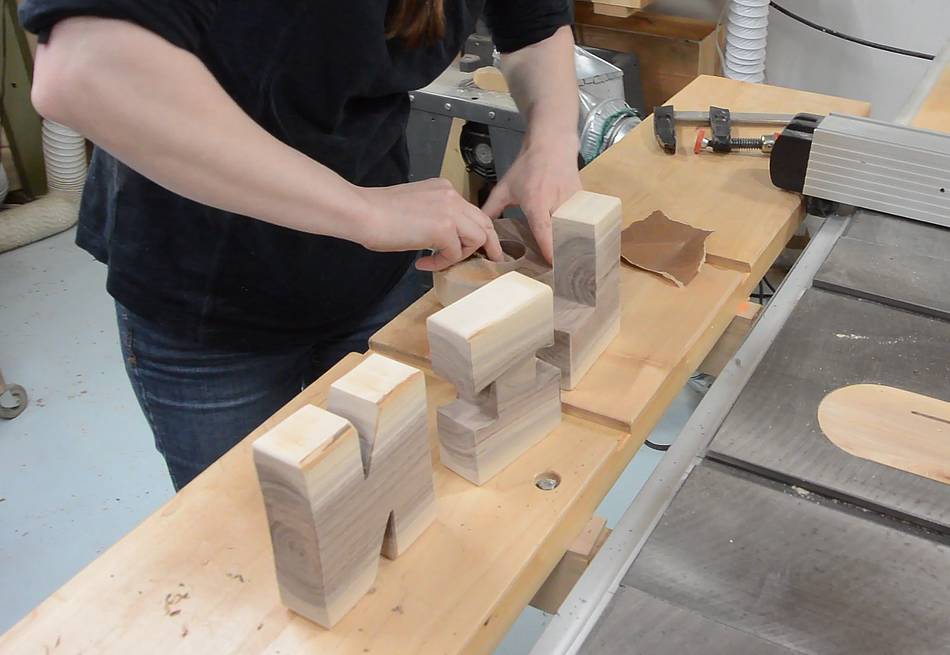 Cutting out the letters on the bandsaw.