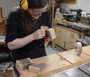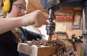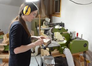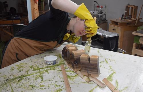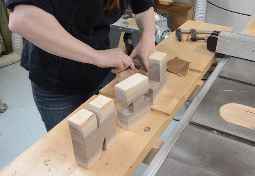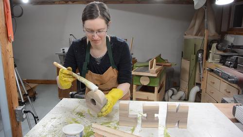 Here Rachel is laying out the letters, avoiding the cracks and knots.