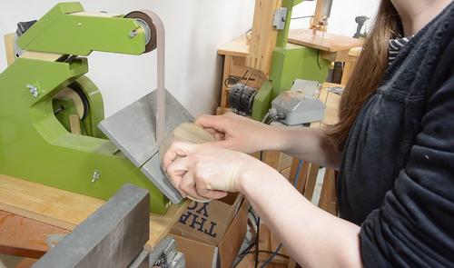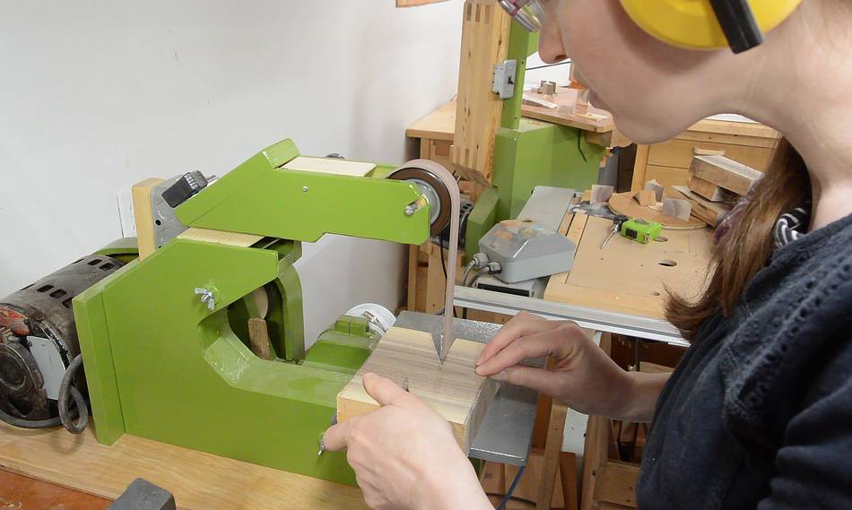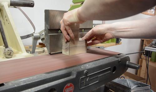 Back to the strip sander, with the table tilted for chamfering the outside edges.