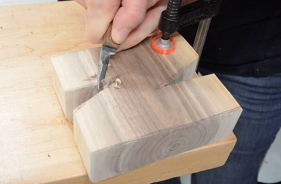 so it can be drilled out. Walnut this thick does not cut well with a
