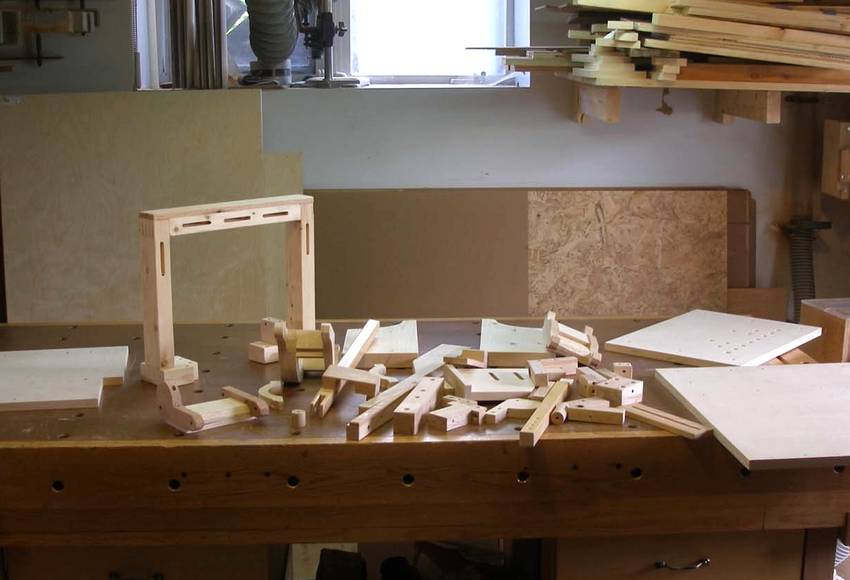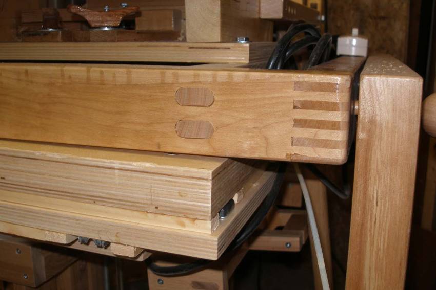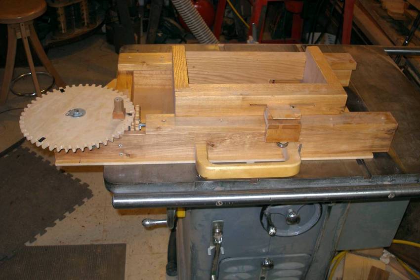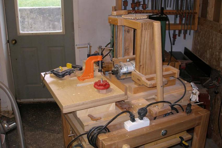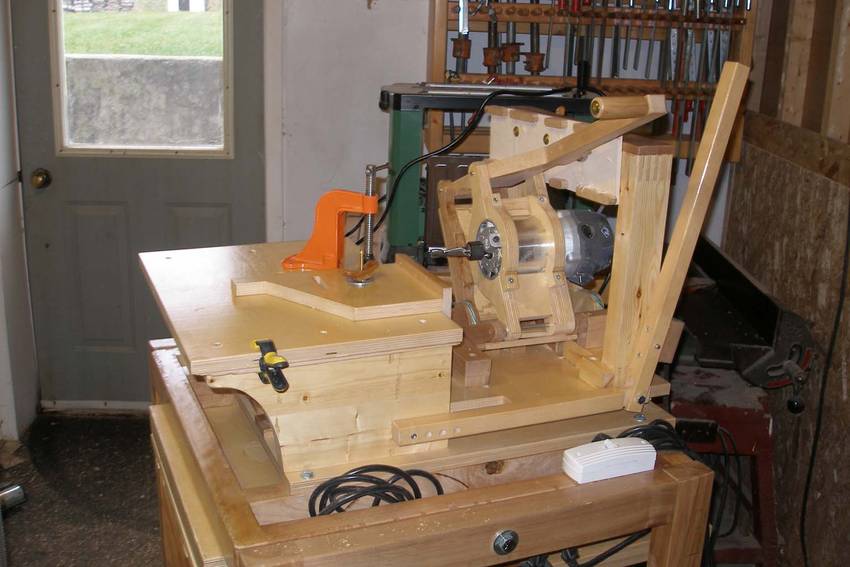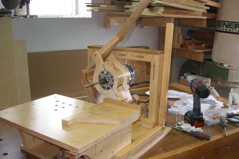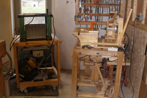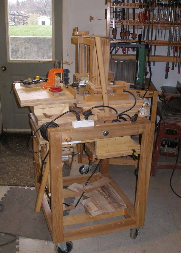 Alain's pantorouter and other projectsAlain Vaillancourt writes: Hi Matthias, I'm writing to thank you for your ingenuity. Last month I finished building the fourth machine I bought the plan from you. I'm including the pictures of the four machines I built: the advance box joint jig, the slot mortising machine, the tenoing machine and the pantorouter. I'm also including some projects I did with them: a toolbox, a box for my sander and the two pivoting stands for my tools.