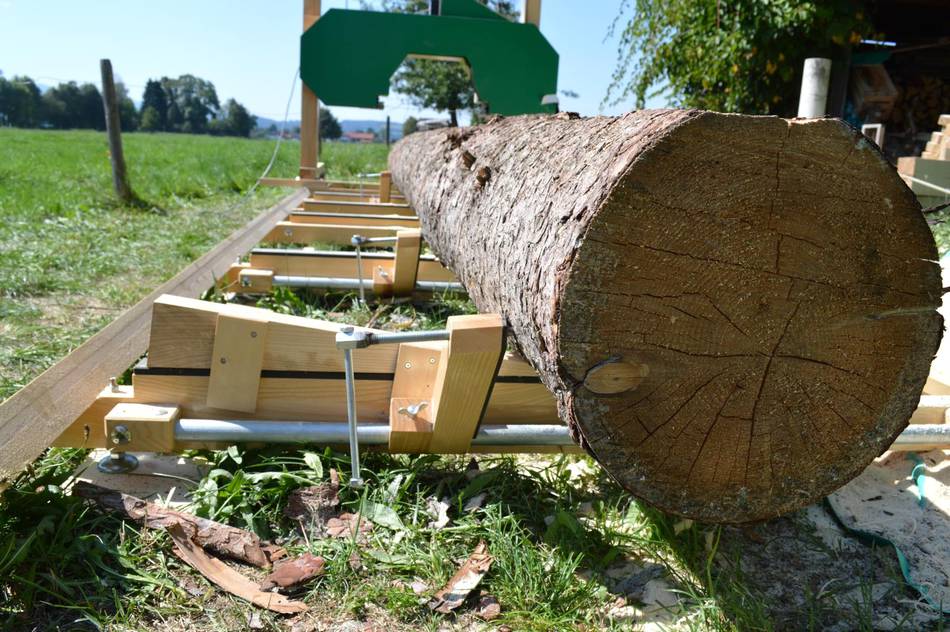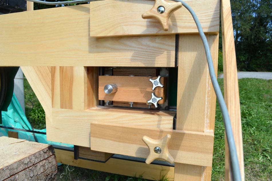 and consists of three pieces. The sawmill head can be moved with