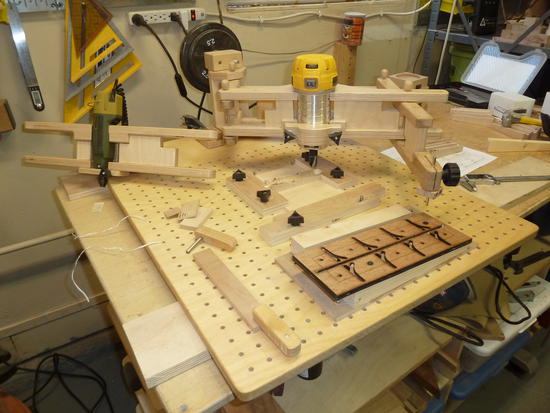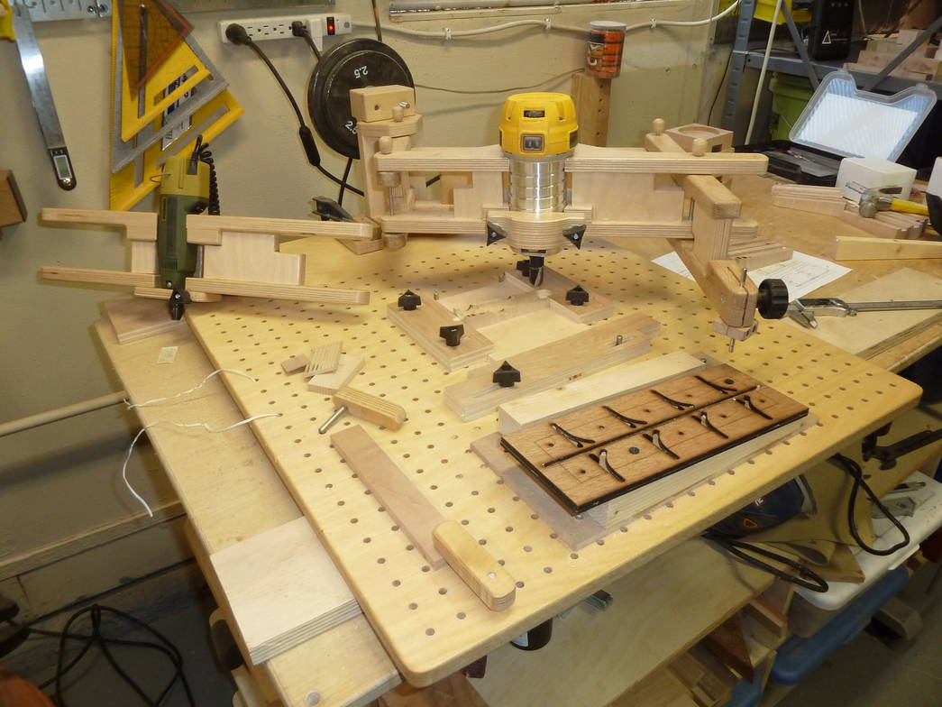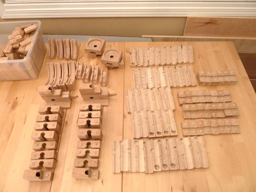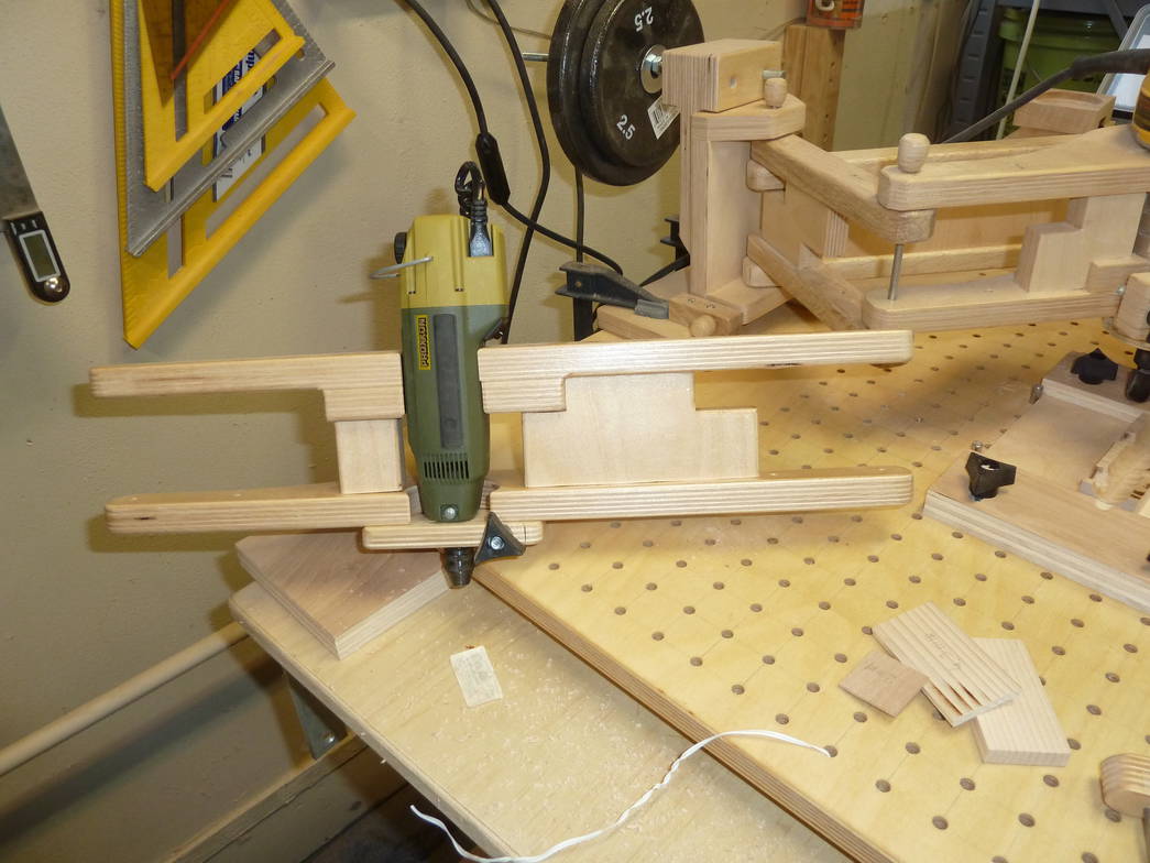 3-D router pantographThe 3-D router pantograph has also been a fun project. I first tried to laminate perforated hardboards together for the base, but they turned out not to be very accurate. The holes did not line up. So I ended up hand drilling holes into plywood. It was a lot of work and it's not as accurate as I would have liked, but still better than the hardboard. It is quite convenient though and allows me a variety of choices for clamping work pieces. The counterweight makes the use much more comfortable. I made a 2nd mount for my German made Proxxon rotary tool. They are better quality than Dremel and have a nice steel collar for mounting.Marble run toy blocksThe marble blocks are still work in progress. My nephew turns two in October, so I still have a bit of time.