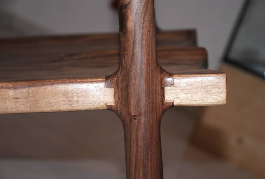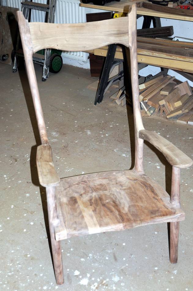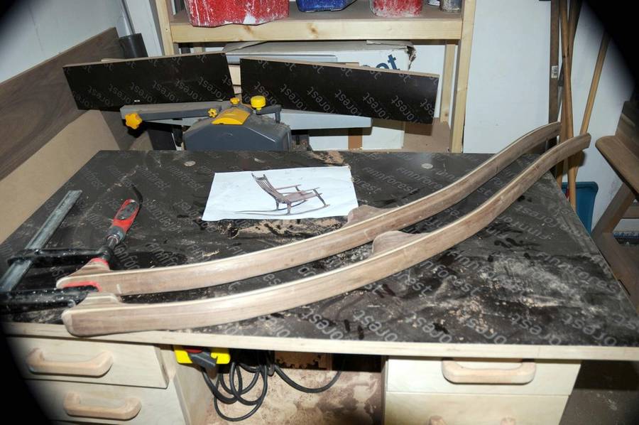 1 day for the design of the templates You are right about the mistakes. I should have tested the cut on the table saw with another piece. I had previously built a small Maloof-style chair, but that was far less work, so I didn't have much related experience. There isn't much that can be done with machines with this chair so one is very dependent on manual work. Never before have I worked as much with a rasp. :-)