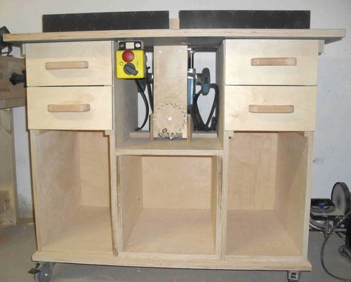 I like how the router mounts under the table, which is hinged to the cabinet