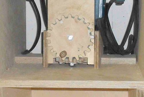 The gearing to the threaded rod is almost the same as in the router lift that I built,