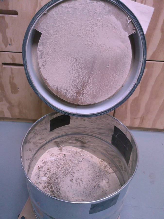 And this illustrates quite well how the thing works and what the baffle does. It prevents the dust under it (in the incoming air and in the bucket) reaching the inlet to the filter. Without it the, dust you see, and much more, would end up in the filter bag. Trust me, I’ve tried it