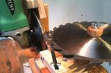 I’d found having a portable dust extractor in a small shop a nuisance and had installed it and some ducting on the wall. I found that I could, but only just and with a clean bag, clear the shavings from my jointer/planer about 6 m away. So improvements were needed, hence my thought to install a cyclone, and possibly a filter in place of the bag which was, to say the least, not that efficient. But a cyclone takes up space, need a separate bucket, etc. So instead, a Thien baffle inserted after the blower in the space between the filter bag and the collecting bag below ought to be worth a try. And after some experimenting with different distances between the inlet and the baffle, and to the details of the membrane inserted to restrict airflow to the filter bag, I found a setup that worked satisfactorily. So satisfactory in fact that I could run the thing without the filter bag and not create a dust storm in the shop. That was good enough for me, so I replaced the cardboard and duct tape with plywood disks, and the bag with an appropriate filter.