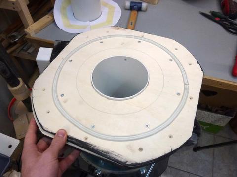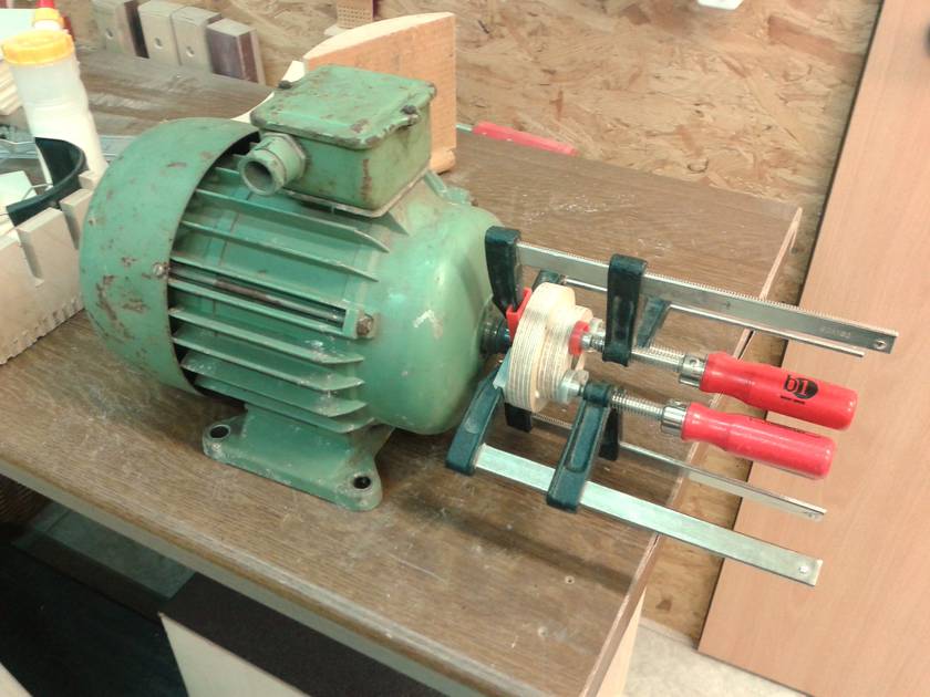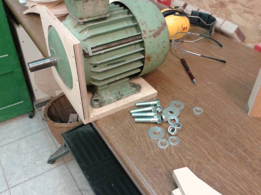 I made the mounting flange for the rotor out of birch plywood and then