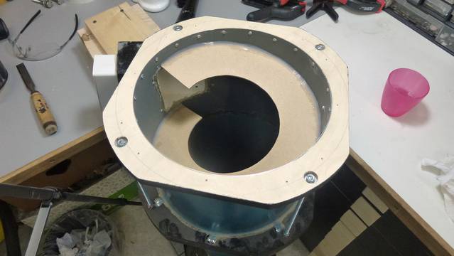 I wanted to give the cyclone inlet a little bit of a angle downwards to improve the separation. Cutting this complex round angle was a lot easier to draw than it was to make, but it worked.