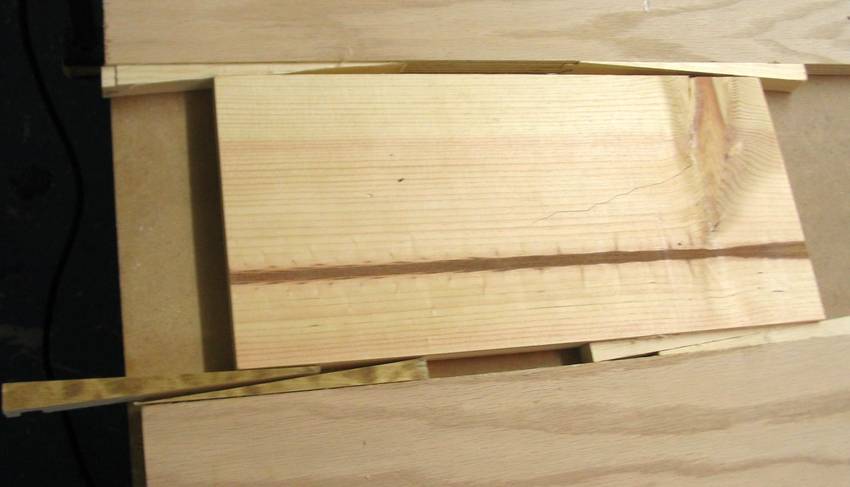 After aligning the workpiece to the template I cut some wedges to secure it as shown in
