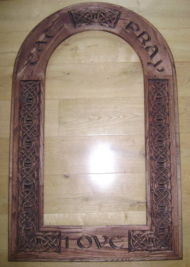 I then downloaded some Celtic fonts and border design fonts and started making mirror frames etc. Of course I soon decided it was too slow and have now got two units working in tandem off a central pattern, as you can see from the photos.