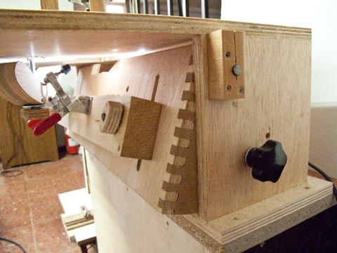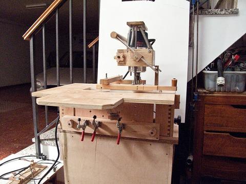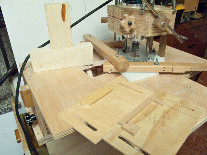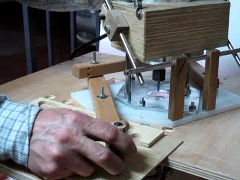 Lucas says he was inspired by my Pantorouter. He liked the idea of templates that are twice the actual size. The idea for the table came from the Leigh FMT jig. I really like the simplicity of this machine. Much simpler than my Pantorouter. why didn't I think of that? But there's a lot more that the Pantorouter can do.