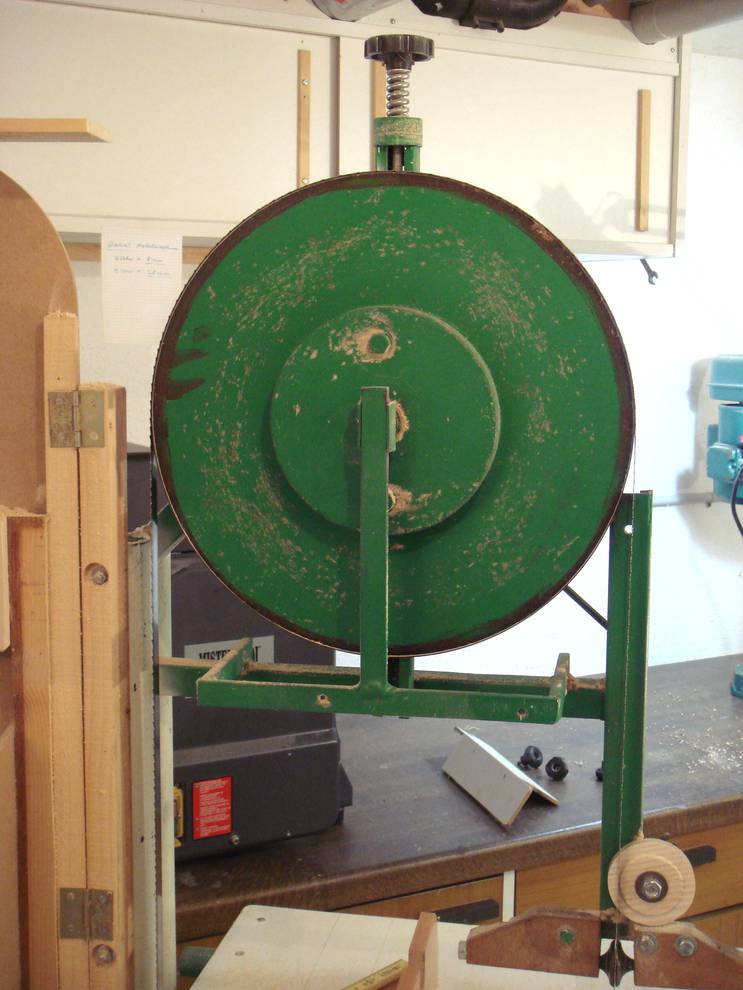 Paul Grundbacher's BandsawThis article also available in German.Paul writes: Many years ago I built a bandsaw to cut firewood for my fireplace. I welded the frame together out of metal tubing and water pipes.