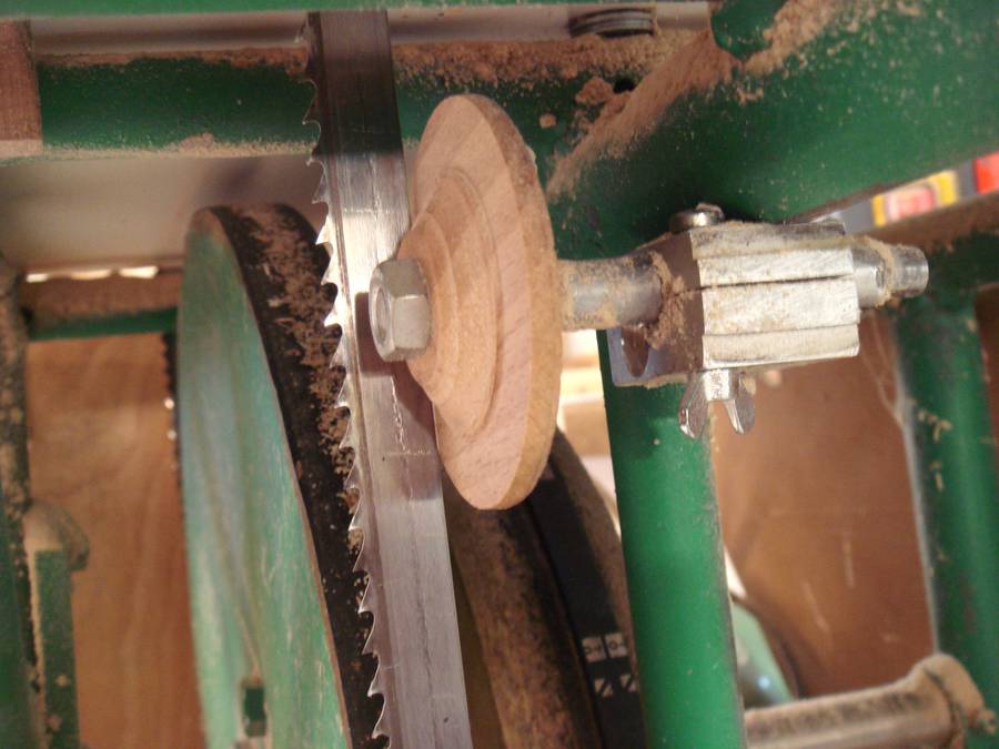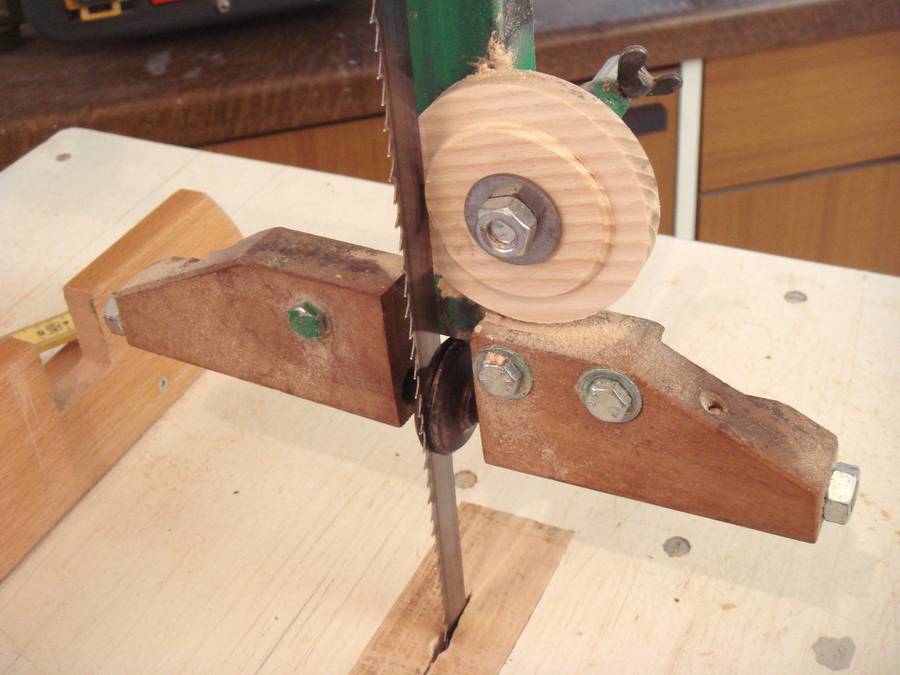 The blade guides consist of a wooden wheel to take up the thrust. It gets