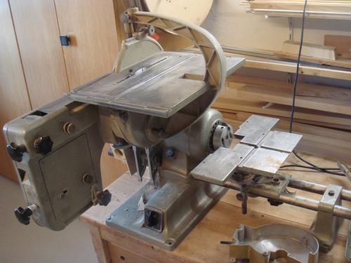 There was also an optional jointer/planer attachment, as well as a XY sliding table to use the machine as a slot mortiser. There was even an attachment for sharpening circular saw blades (this machine predates widespread use of carbide tipped circular saw blades)