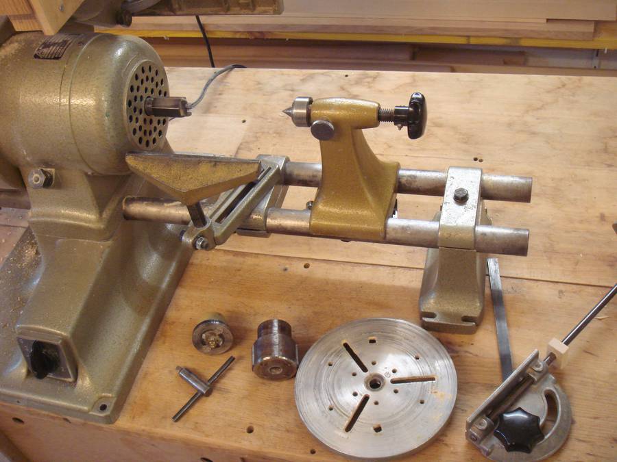 A shaper head can be mounted on the back of the motor (the lathe, bench grinder, and optional jointer /