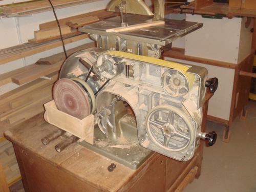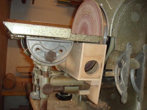 Paul added a dust shroud for the disk sander, and also made a larger sanding disk, as the original