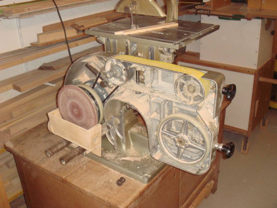 The bandsaw, with it's tiny 6" wheels caused too much bending on the blade, causing them to break often. Paul stopped using it as a bandsaw.