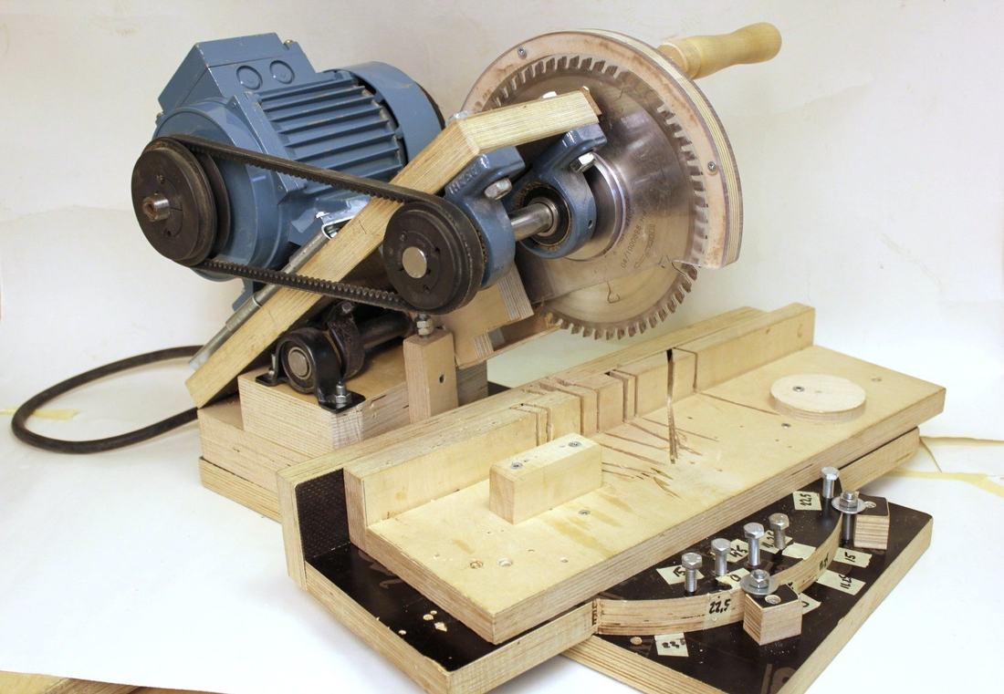 One of my hobbies is turning segmented wood. For that, I need to cut many small segmented wood pieces with very accurate angles. There are many commercial miter saws on the market, but I built my own of plywood. Those cheap saws are not rigid, the only good one is the Festool Kapex saw, but it is very big and very expensive. Many saws have sliding action, but I do not need that because my pieces are rather small. Sliding saws must be very solidly built, so that when moving the saw blade through the wood it cannot deflect sideways. I have also not seen any saw with good dust collection.