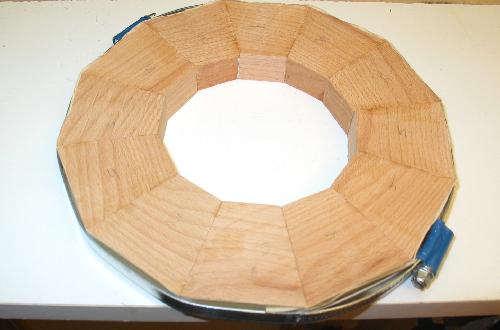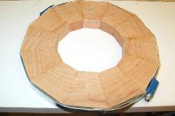In segmented wood turning, segments are used to make rings and these rings are glued in a brick wall pattern to make a bowl shape. Rings can have 12 to 36 segments. The segment's miter angle must be very accurate.