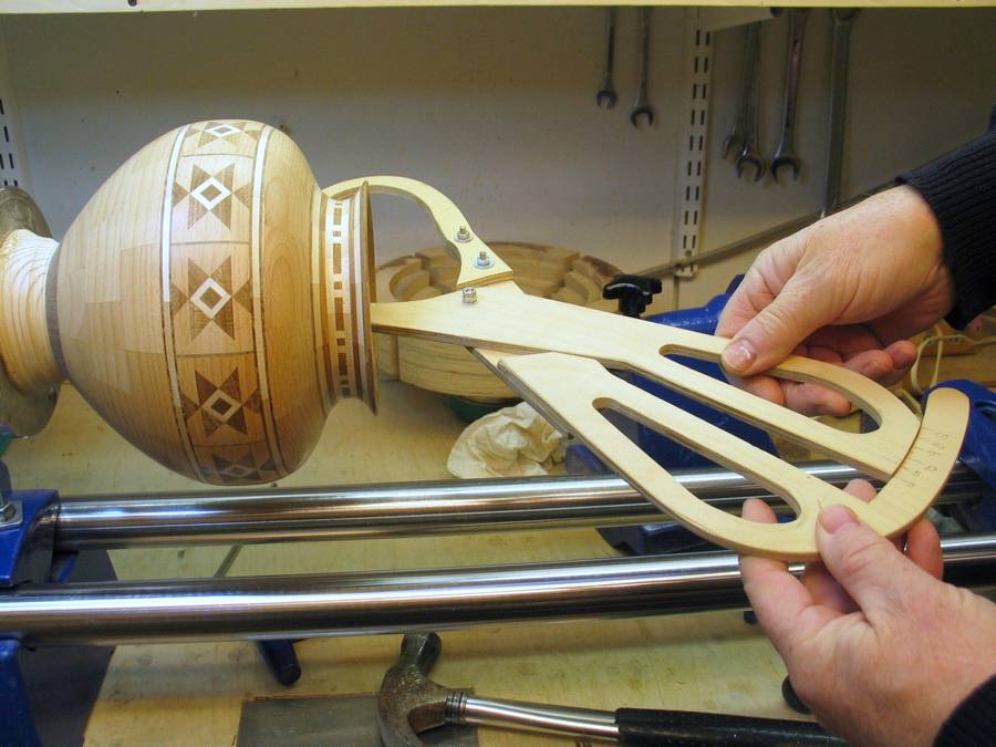 gluing clamp, pressing the rings together with the tailstock.