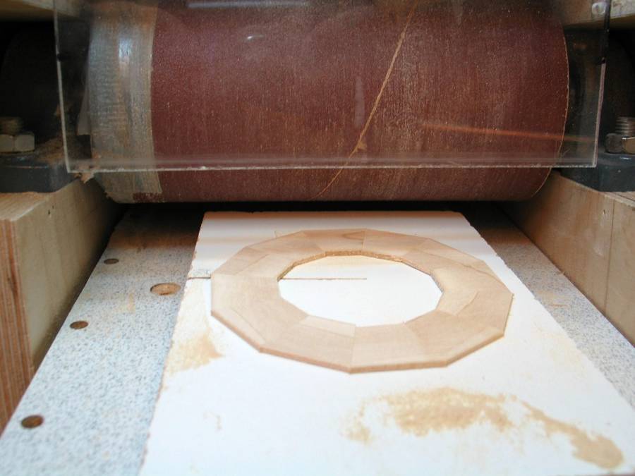 After the glue is dry the rings can be thickness sanded. The first ring is glued to