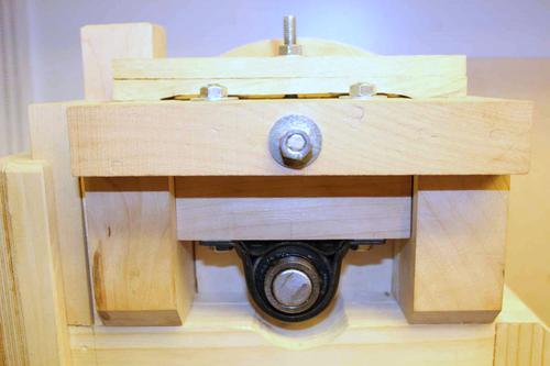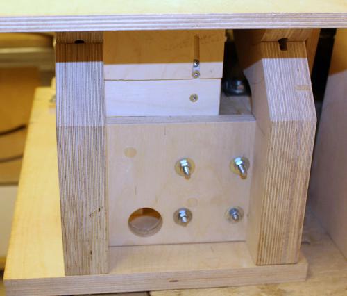 I can adjust the supports with 4 nuts on the right to get the blade to line exactly on line with trunnion pivot point.