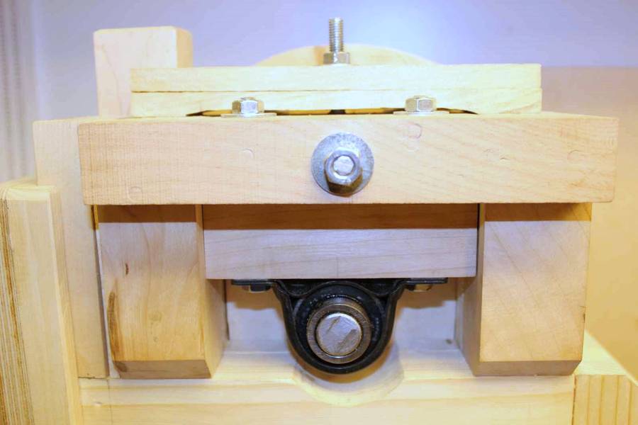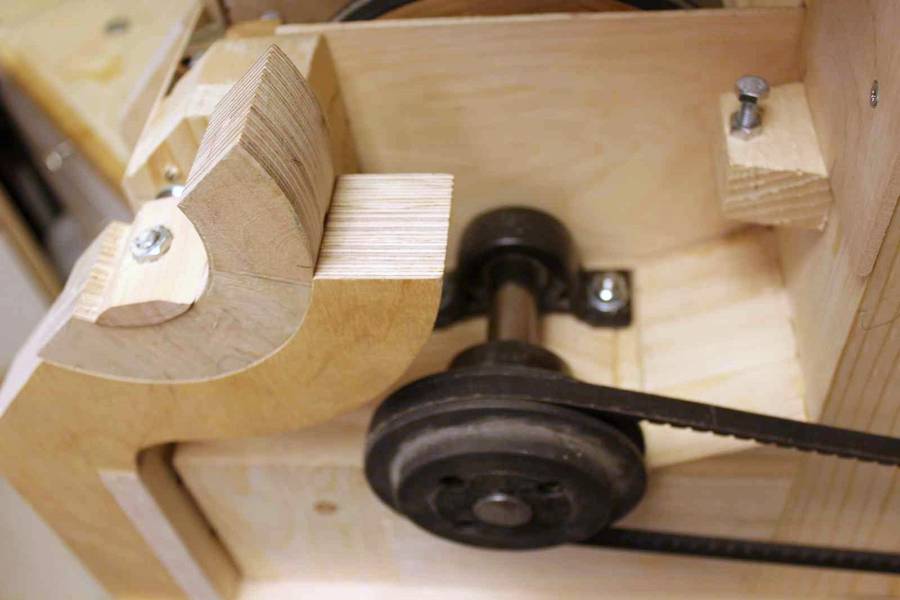 The wheels are mounted on a 20 mm steel shaft with a pulley as a hub.