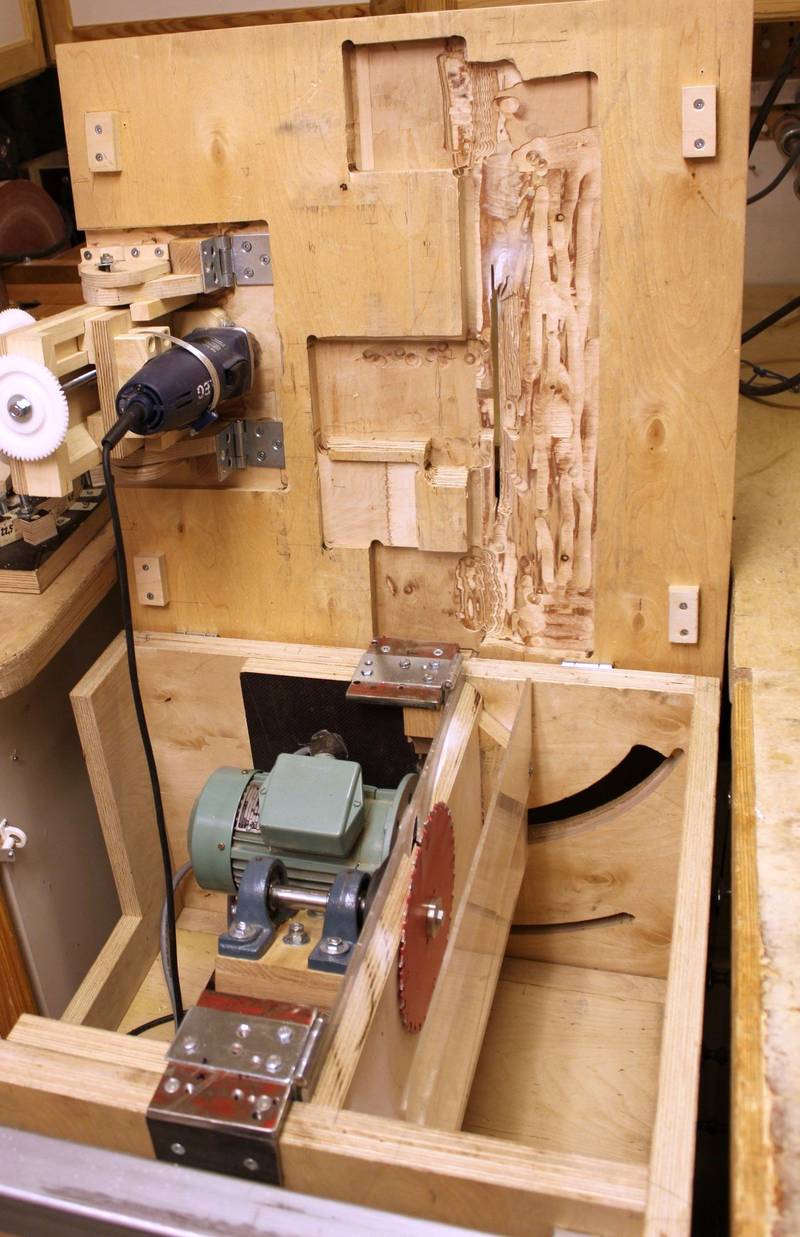 The saw's frame is made of 30 mm thick birch plywood. It's on