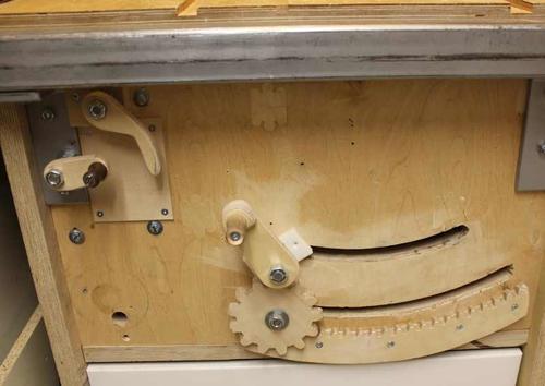 The table saw interior is totally changed, the blade unit is lifted and supported by drawer glides. Very easy to operate and precise.
