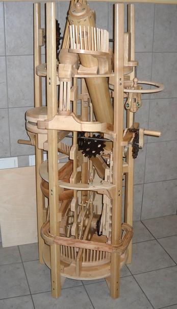 The moving ramps are based on Paul Grundbacher's machine Etagen