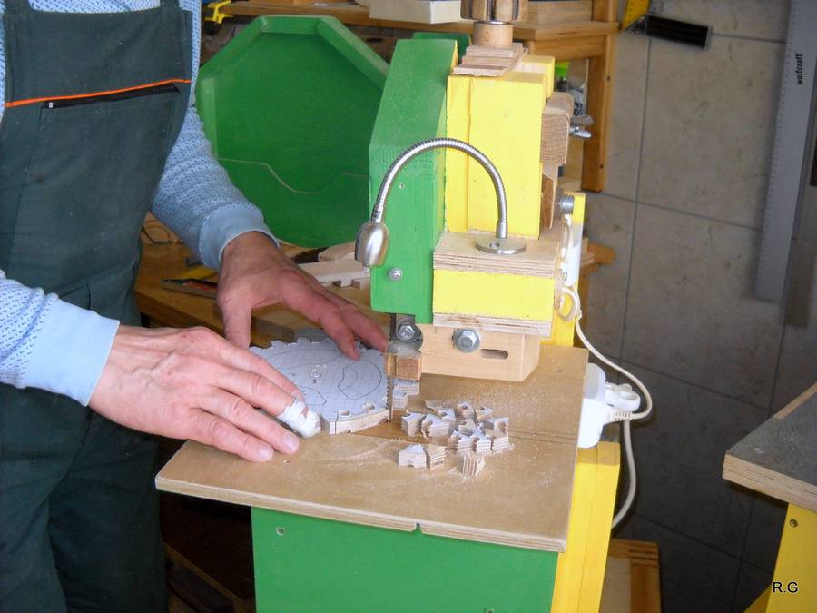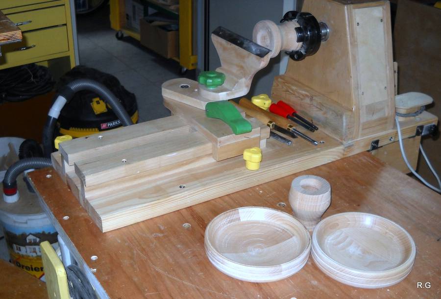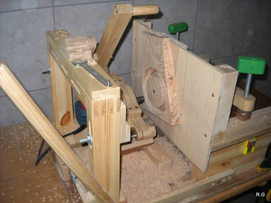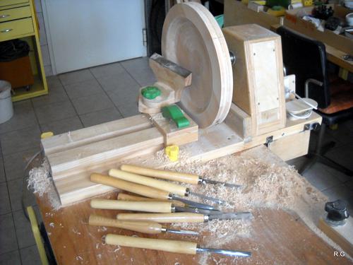 I used all my homemade machines to build it: my lathe, drum sander, disk sander, bandsaw, router lift and my pantorouter