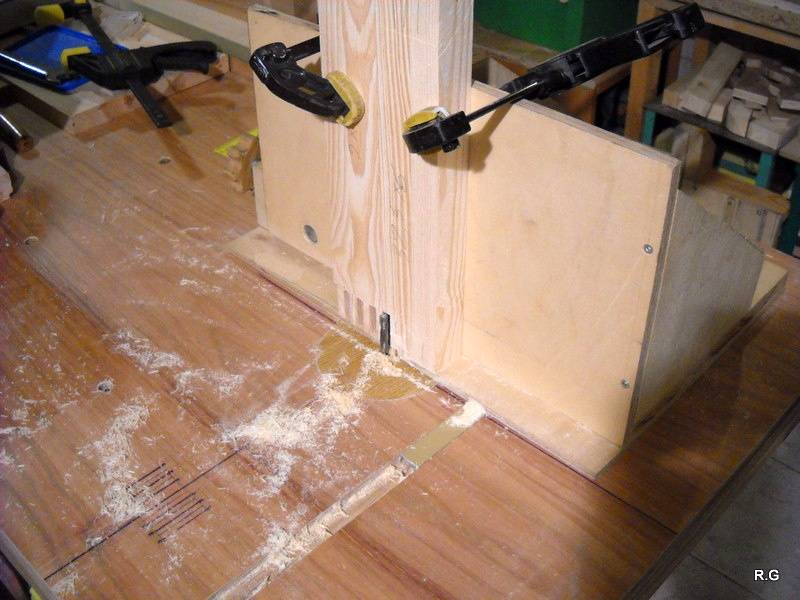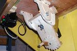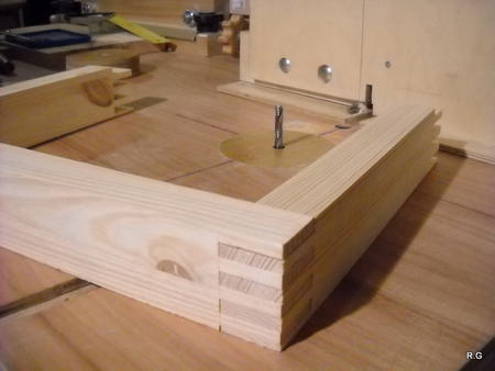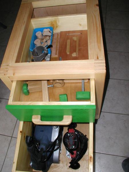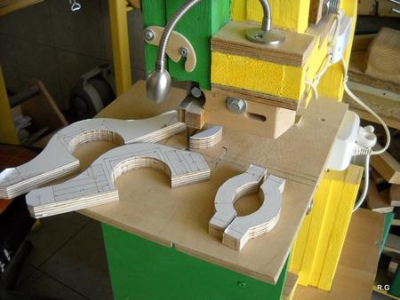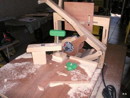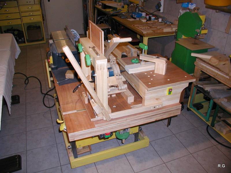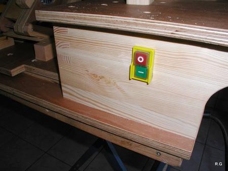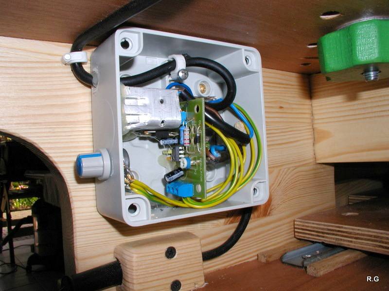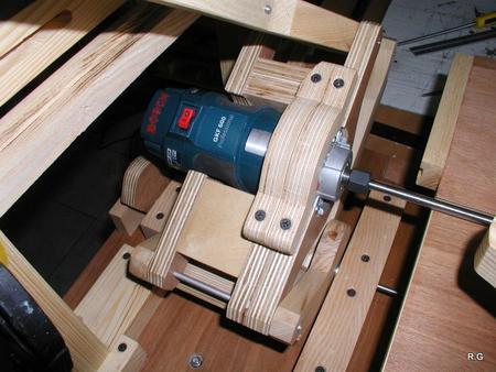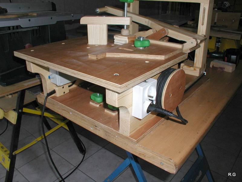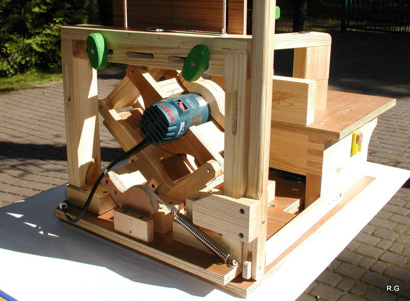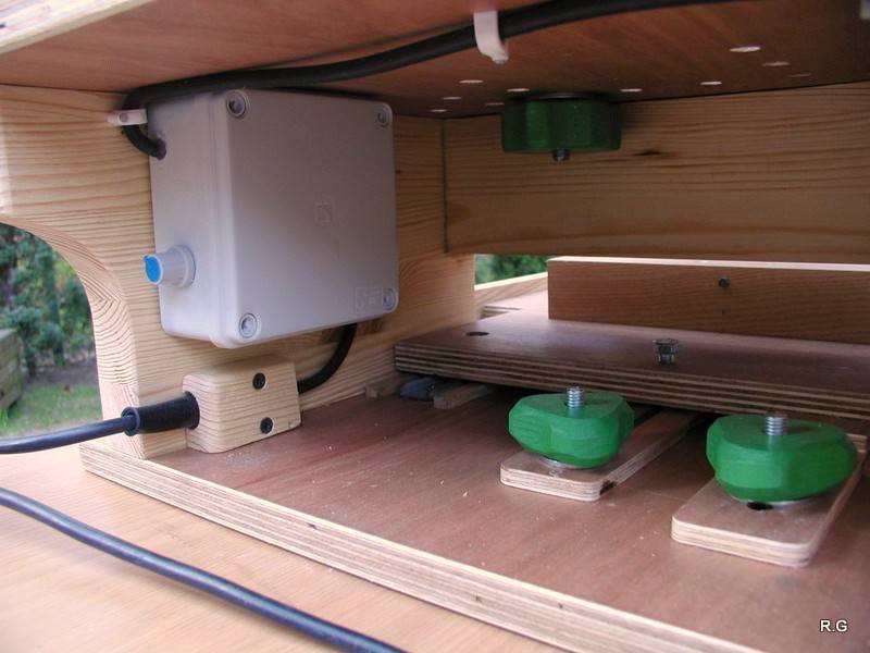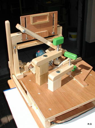 Ryszard's pantorouterRyszard writes: Hello Matthias, For the last 10 days I have been working on building the Pantorouter. Your device is designed very precisely. Its construction is well thought out and thoroughly tested. I think that you have spent many hours of work on the device to look as it does in the plans. Everything has got its justification. Actually, although I am an engineer, I did not have to improve anything. I made everything exactly following the plans and the videos on your website. It turned out perfectly. Your device is a gem – working on it was a real pleasure. I used a GKF 600 router (I think bought it under the name COLT) However I had to make some changes: instead of 19mm I used 18mm plywood since this was the only available; instead of maple I used pine and ash (the maple is not available in my area and I had some ash left). I did not buy knobs, instead I hand-made them - I could not find them for sale. I used the ball tracks from a computer keyboard drawer as tracks for the mobile table. They are solid, steel. I used additional balls out of the ball track bought on sale (now I need to use some other solution for the keyboard). All my machines and accompanying devices for the table saw and the router that I have been using so far worked perfectly while making the Pantorouter (you published most of them on the 19th March on your site). I could not stop working, I was so involved. You will probably notice that the electrical installation is more developed: I used a relay safety switch and a self-assembled electronic speed controller. The adjuster uses triac and a U2008B chip (purchased for DYI enthusiasts’ self-assembly) designed for the brush motors. The speed controller enables speed regulation from 5% to 95%. It also has a soft-start circuit. It uses an aluminium heat sink for cooling the triac. It can control motors up to 2.5kW. It's mounted up under the table as you can see on the pictures. Since I don’t like tangling cables, I added a cable holder on the side for coiling the cable, and a socket for the router and the light. I'm making some templates now, your instructions are invaluable here as well, very helpful and time efficient. I will be using an 8 mm spiral cutter and a corresponding 16 mm bearing on the copying lever. Best Regards, Ryszard
