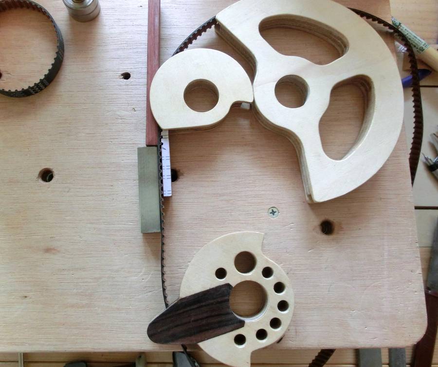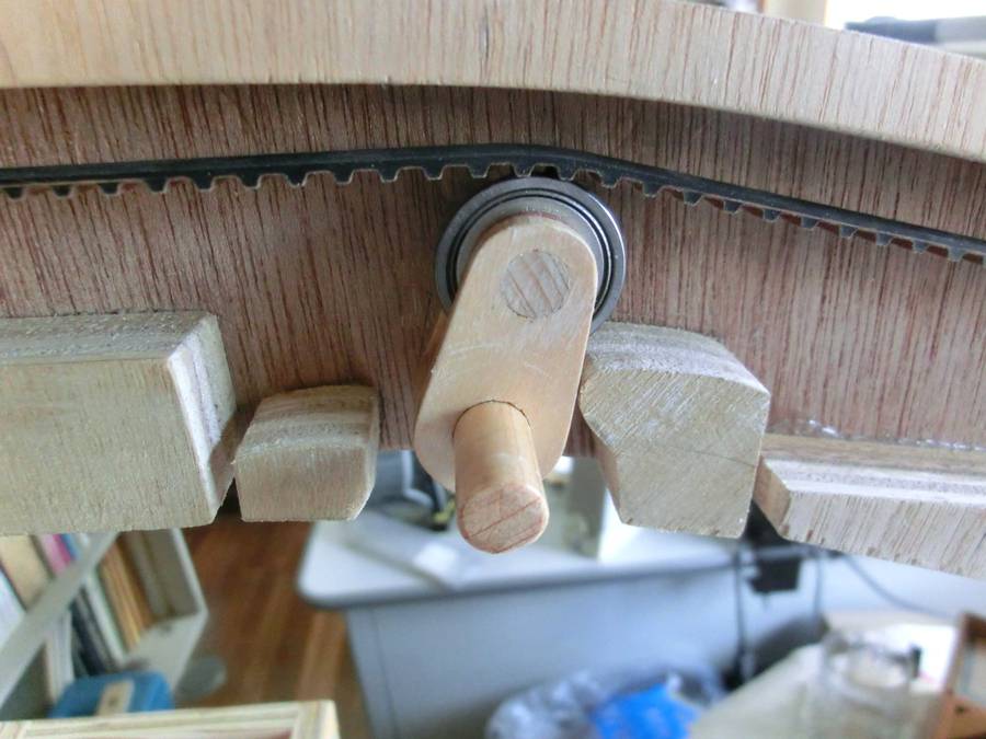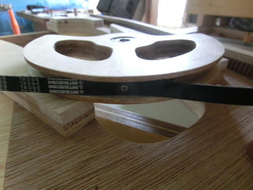 The belt was fixed to the wheels in the middle with a machine screw so that the position of the belt and wheel don't shift if the blade breaks.