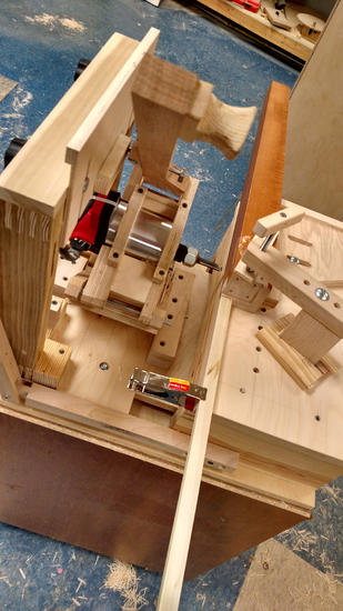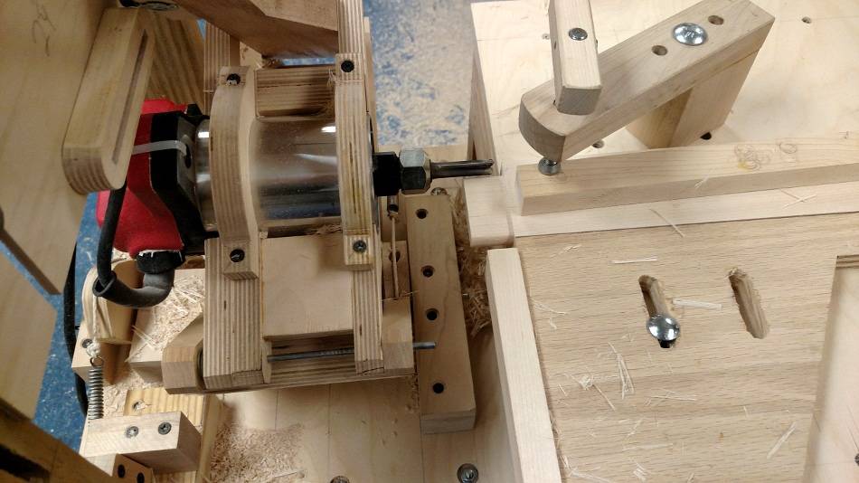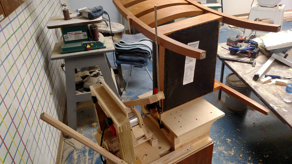 Using the pantorouter for furniture repair![]() Dave Tenney writes: I am the Facilities and IT manager for a Public Library. Kind of a weird job combination, but that's what happens when you work in trades to get through college ;) On the facilities side we take care of eight buildings. Not only do we repair furniture, but we also build new pieces when time permits. We also use your tenon jig and the box joint jig in our work. The pantorouter that I built for work was done in fits and starts over a 7 month period. I built mine at home in about a week! The one at work uses the followers from Kuldeep...I think we have the 10mm, 15mm and the 22mm. We also made templates similar to the commercial ones, which really makes setup easier. I had some trouble getting the oddball Milwaukee router mounted in it, but we had it on the shelf.