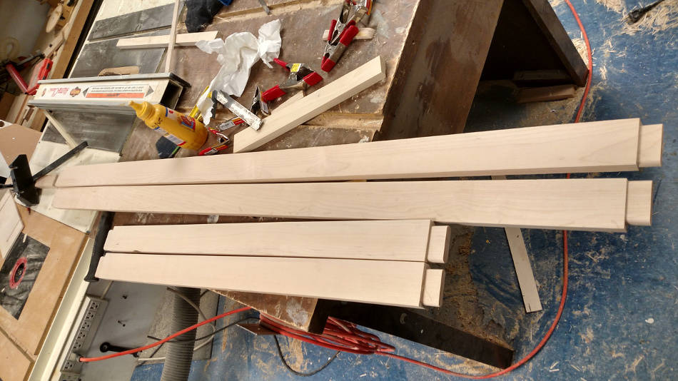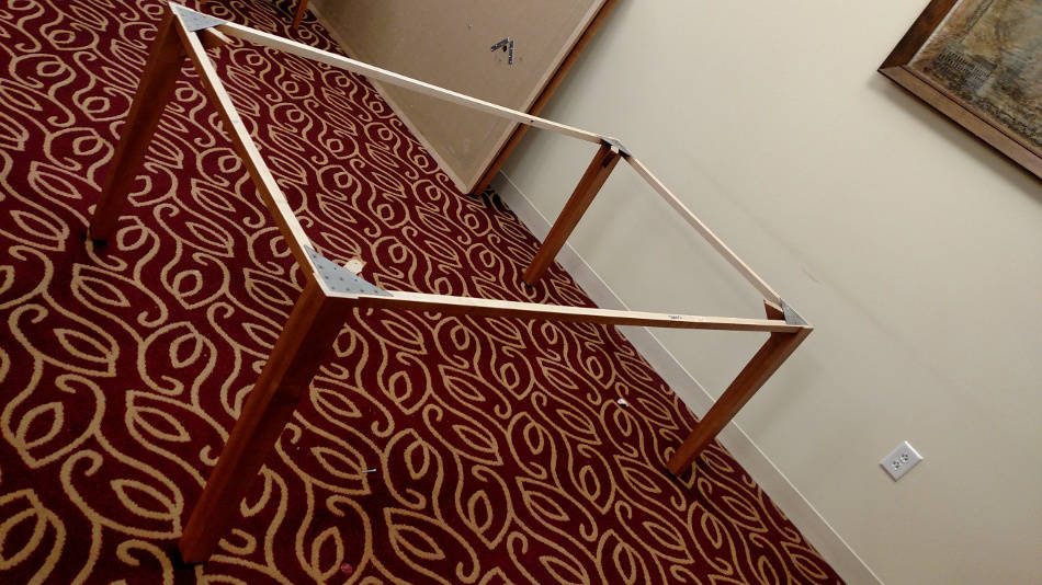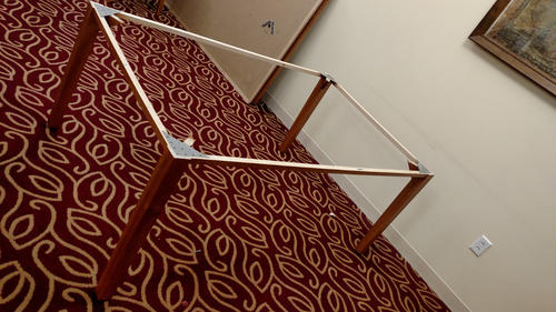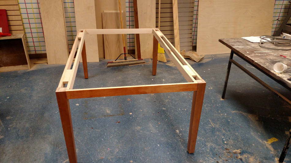 Our solution to repairing these tables is to add a proper support system under them. We will be using 3/4 x 2 1/2" hard maple for the aprons. This is as tall as we could go and still provide clearance for the arms on the chairs to go underneath them.