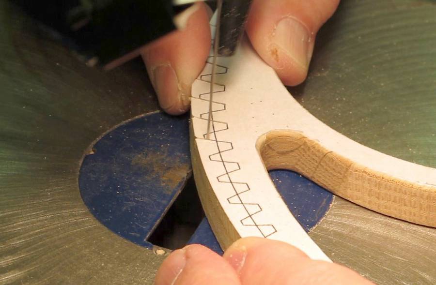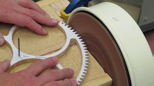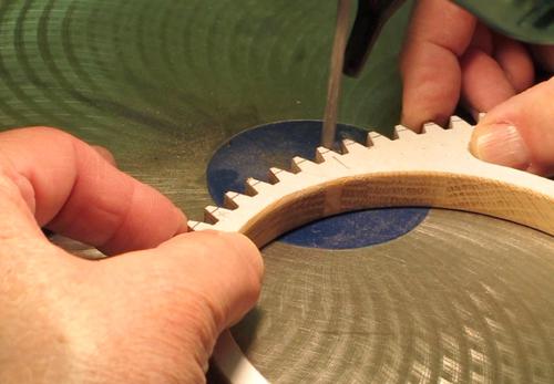 the corners of the teeth. After all teeth are cut, I sand to the pattern