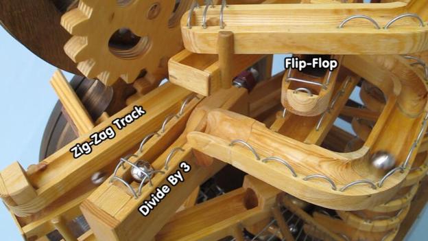 like an A-B Switch). The flip-flop determines if the marbles go to the xylophone