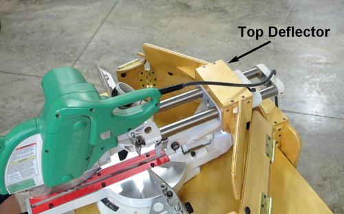 The dust collector adaptor hangs on the back of the fold-up mechanism