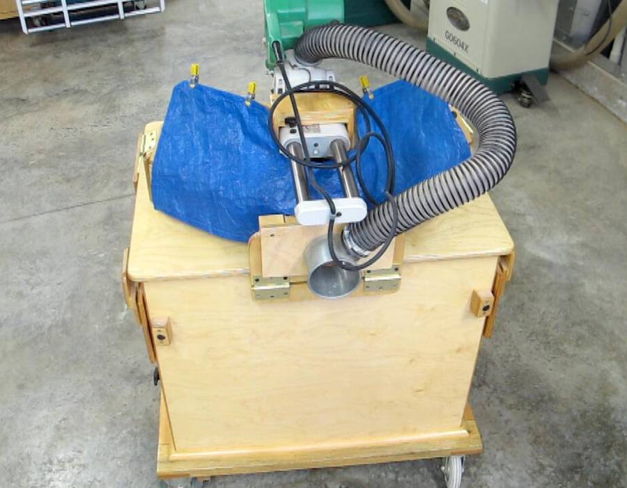 I devised a hinged fold-up dust collector that folded to the rear of the