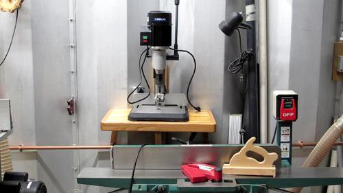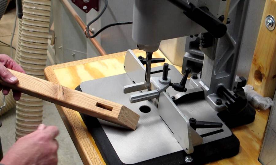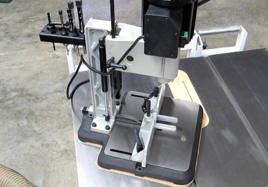 The mortiser is out of the way but easily accessible.