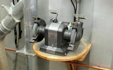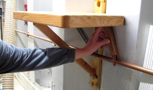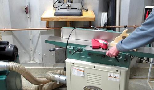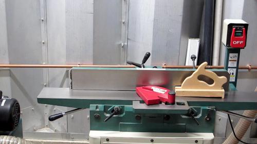 The shelf is set at 42" above the floor so the jointer (handles) would