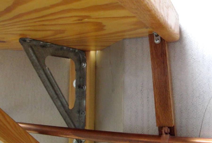 A heavy-duty steel shelf bracket was used as a main support for the