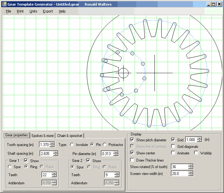 Gear setting. Pin size, spacing, shaft spacing and other variables are