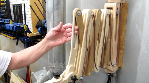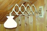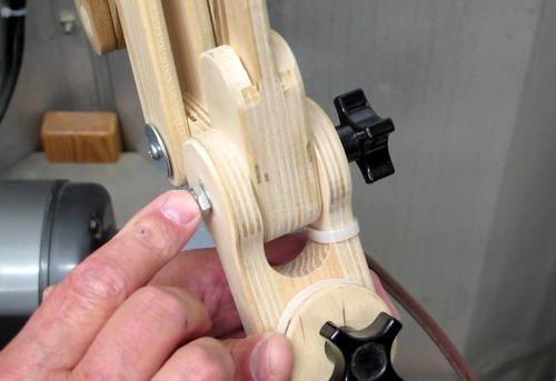 The wall mount pivots on wood dowels at the top and bottom allowing the
